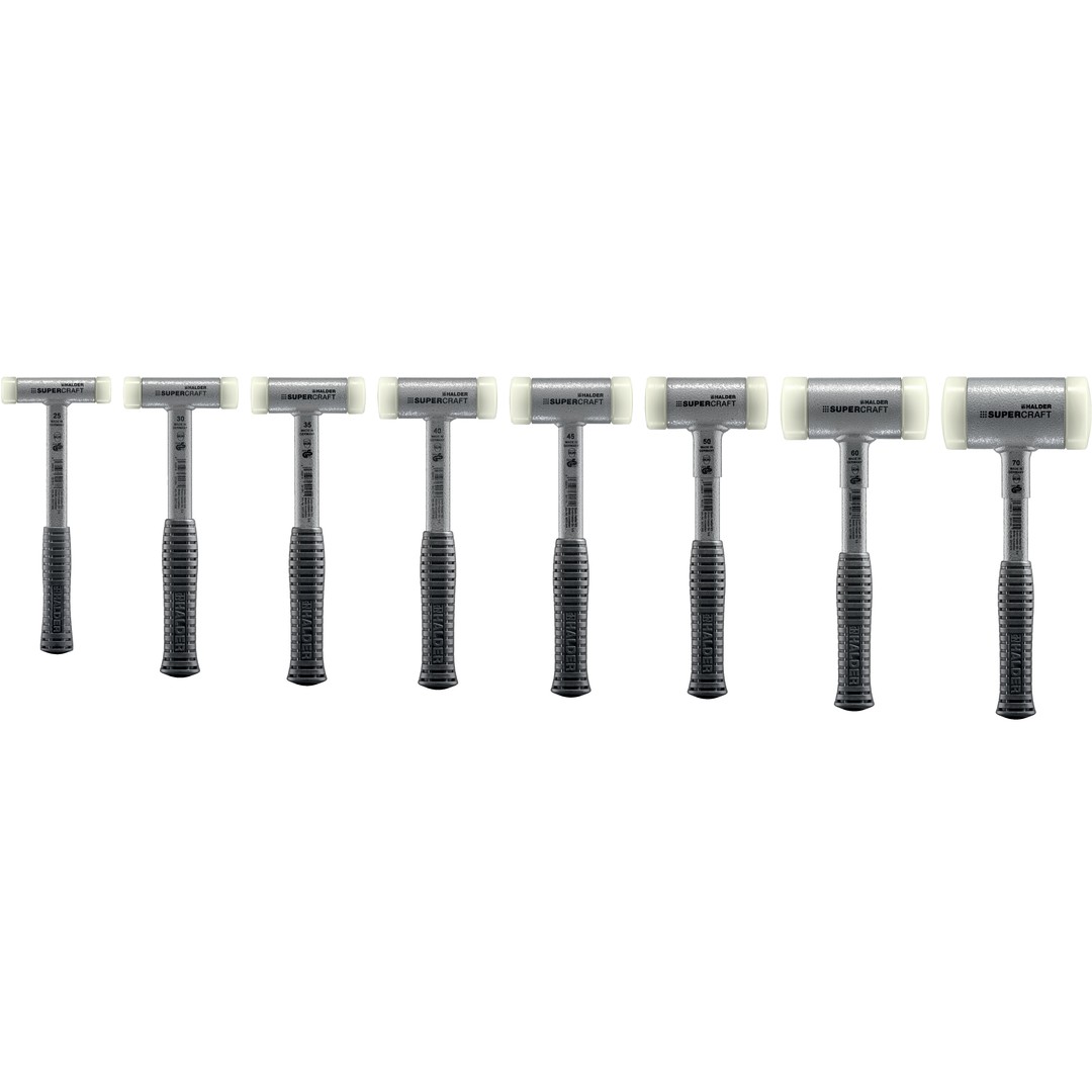 The tubular head of the SUPERCRAFT soft-face mallets is filled with steel shot. The reduced rebound allows the impact energy to be absorbed with perfect efficiency.Â