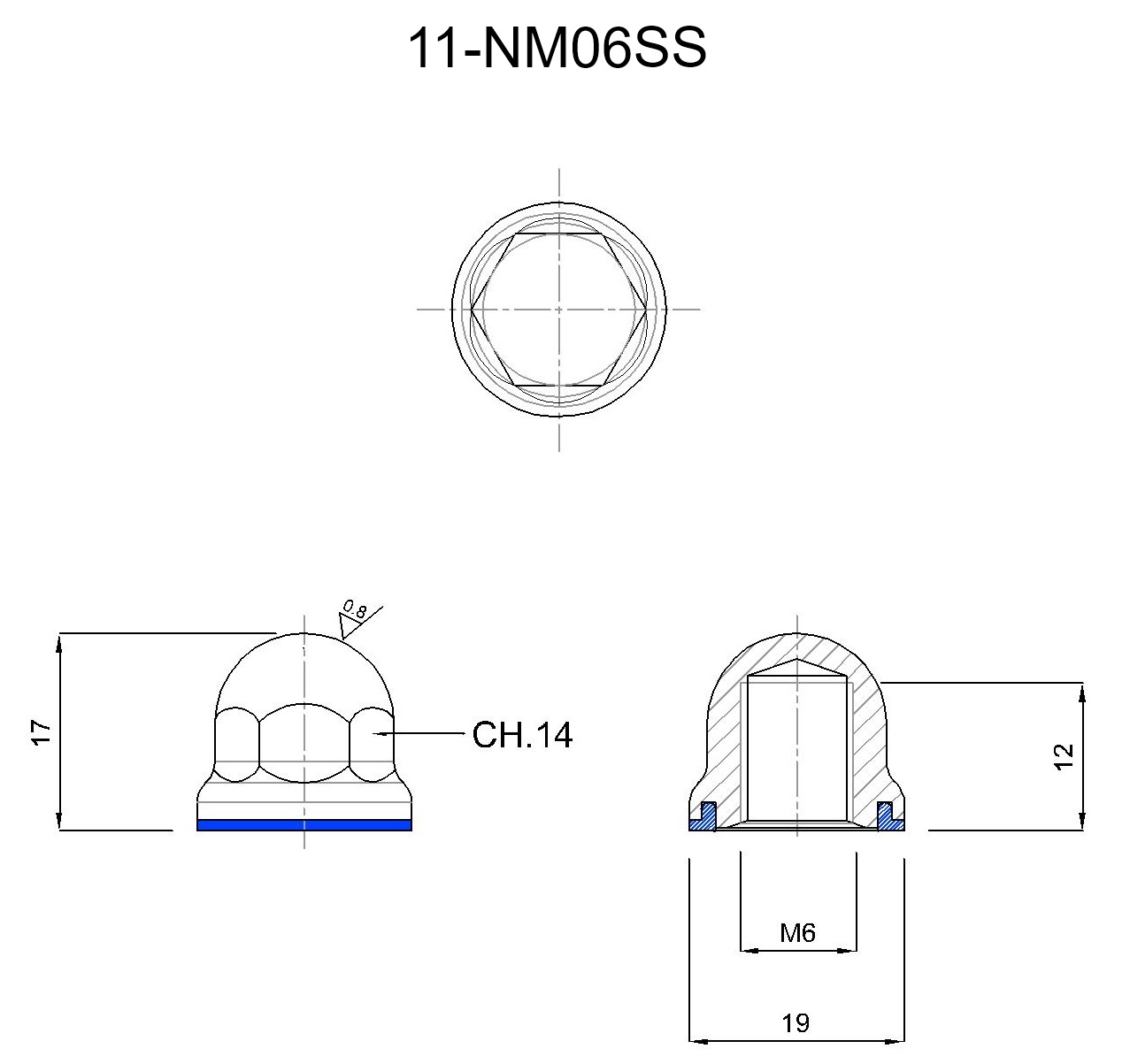 11-NM06SS 3A Hygienic High-Gloss Polished 304 Stainless Steel Dome Nut M6